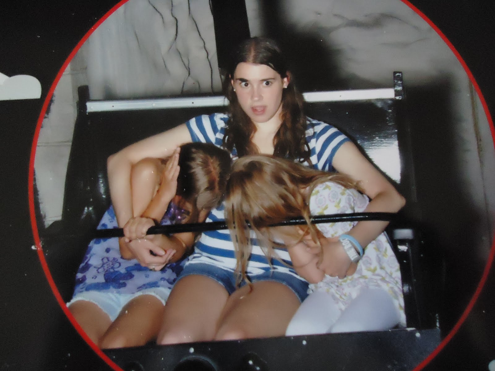 While at Funland, both Haylee AND Ashlee begged me to let them go on the Haunted House ride...I was reluctant because I KNEW it would be too scary for them...but, after much begging, I caved and let them go on the ride, with their cousin...I waited anxiously for them at the end of the ride...and when they finally were done, Ash sternly said "NEVER AGAIN!!!" Here is a pic of their 'fun' experience, lol...THIS PIC SAYS IT ALL!!! I crack up everytime I see it...they pretty much were like this the whole ride, lol!
